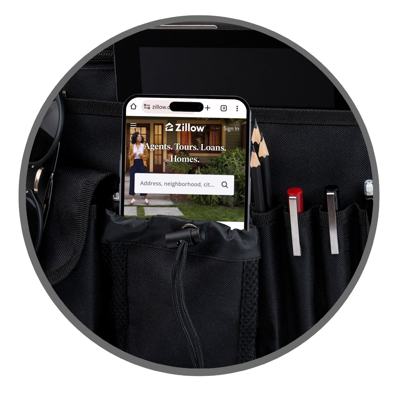 In real estate, flexibility is key. Whether you’re chauffeuring clients, stashing signage, or simply keeping your caffeine close, this organizer gets you.